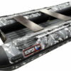 — Надувное дно низкого давления уже в базовой комплектации усилено в кормовой и носовой части специальной защитной ПВХ полосой, это позволяет безбоязненно вытягивать лодку на берег.