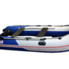 Надувная лодка СТЕЛС 335 изготовлена и ПВХ ткани плотностью 950 гр/м.кв., и представлена в современном дизайне и комбинированном сине/белом цвете.